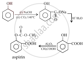 \[\ce{Phenol ->[(i) NaOH][(ii) CO2/140°C] A ->[H+/H2O] B ->[Al2O3][CH3COOH] C}\]