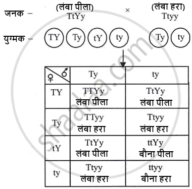 पीले बीज वाले लंबे पौधे (YyTt) का संकरण हरे बीज वाले लंबे (yyTt) पौधे से करने पर निम्न में से किस प्रकार के फीनोटाइप संतति की आशा की जा सकती है।
