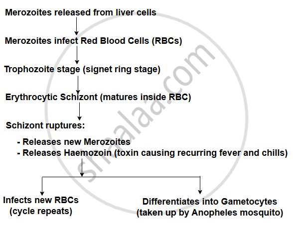Draw a flow chart to outline its erythrocytic cycle in humans.