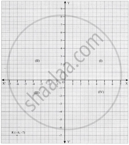 R(−6, −7) lies in the III quadrant because the x−coordinate is negative and y−coordinate is negative.