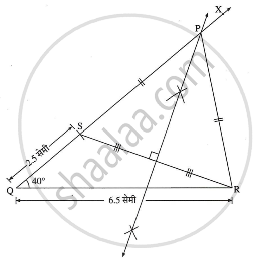 ΔPQR असा काढा की QR = 6.5 सेमी. m∠PQR = 40° आणि PQ - PR = 2.5 सेमी.