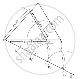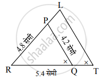 ΔPQR ~ ΔLTR, ΔPQR मध्ये PQ = 4.2 सेमी, QR = 5.4 सेमी, PR = 4.8 सेमी आणि `"PQ"/"LT"` = `3/4` तर ΔPQR व ΔLTR काढा.