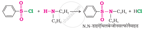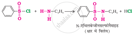 (i) बेन्जीनसल्फोनिल क्लोराइड और प्राथमिक ऐमीन की अभिक्रिया से N-एथिलबेन्जीन सल्फोनिल ऐमाइड प्राप्त होता है।