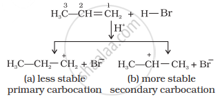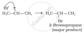 \ce{H3C - CH = CH2 ->[HBr] H3C - CH - CH3}\\
