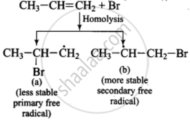 (iv) \[\ce{CH3 - \overset{\bullet}{C}H - CH2Br + H - Br ->[Homolysis] \underset{(major product)}{CH3 - CH2 - CH2Br + Br}}\]