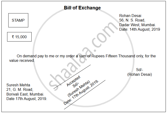 Prepare a demand bill with imaginary Drawer, Drawee, Address, Amount, and Date