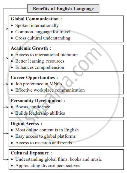 Prepare a mind map on the topic ‘Benefits of English Language.’ Frame/design using your ideas/thoughts/concepts to illustrate.