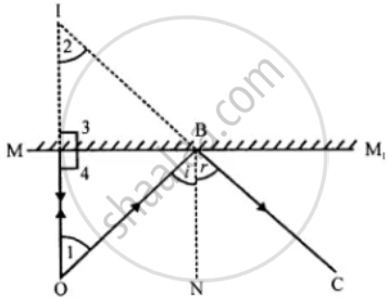However, another ray that moves along OB is reflected along with BC, obeying the laws of reflection, such that BN is normal. Produce OA and CB backward, such that they meet at a point I. Then ‘I’ is the image of ‘O’.