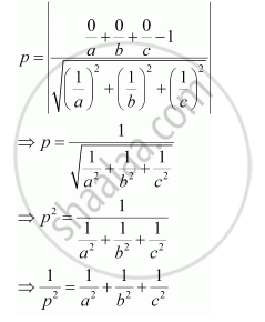 Prove that if a plane has the intercepts a, b, c and is at a distance of P units from the origin, then `1/a^2 + 1/b^2 + 1/c^2 = 1/p^2`