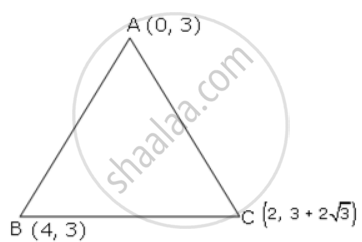 Prove that the points (0,3) , (4,3) and `(2, 3+2sqrt 3)` are the vertices of an equilateral triangle.