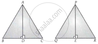 Now, `(ar (ΔABC))/(ar (ΔPQR)) = (1/2 xx BC xx AD)/(1/2 xx QR xx PE)`
