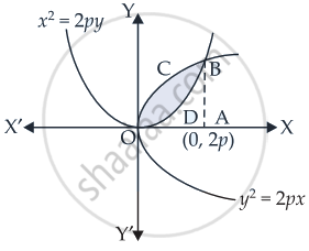 परवलय y2 = 2px, और x2 = 2py से परिबद्ध क्षेत्र का क्षेत्रफल ज्ञात कीजिए।