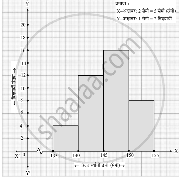 | विद्यार्थ्यांची उंची (सेमी.) | 135 - 140 | 140 - 145 | 145 - 150 | 150 - 155 |