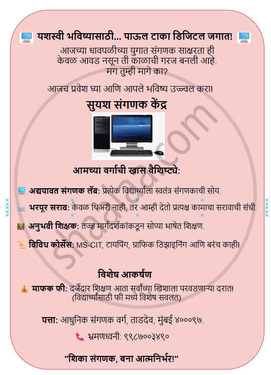 | संगणक वर्ग | काळाची गरज | माफक फी | सरावाची संधी |