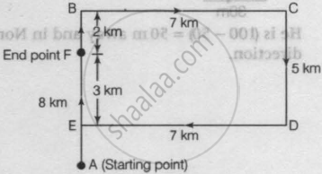 Raja started from point A and travelled 8 km towards the North to point B, he then turned right and travelled 7 km to point C, from point C he took the first right and drove 5 km to point D, he took another right and travelled 7 km to point E, and finally turned right and travelled for another 3 km to point F. What is the distance between point F and B?