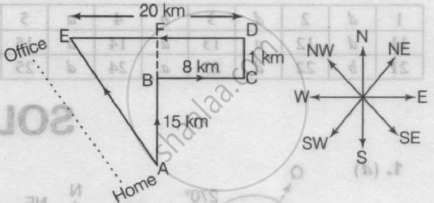 So, his office is 20 km in North-West direction.