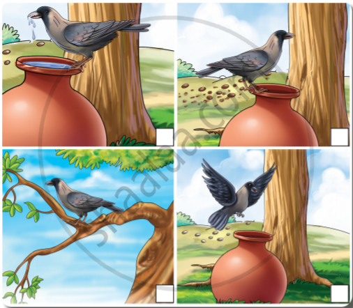 Arrange the picture in order by writing the numbers 1,2,3 and 4 in the given boxes and write this familiar story in about 100 words.