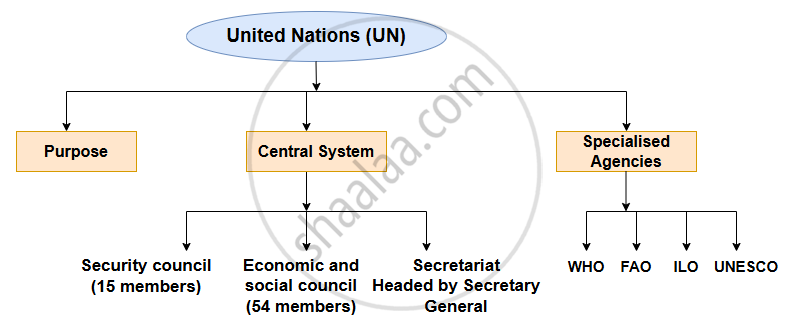 The United Nations was established at the end of the second world war to maintain international peace and security. The UN has several specialized agencies such as the World Health Organisation (WHO), the Food and Agricultural Organisation (FAO), the International Labour Organization (ILO), the United Nations Educational, Scientific and Cultural Organisation (UNESCO). |