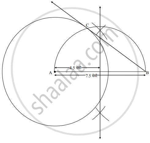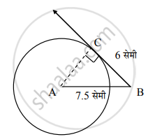∴ AB = 7.5 सेमी व BC ही A केंद्र असलेल्या वर्तुळाला बिंदू B वरून काढलेली व वर्तुळाला C वर स्पर्श करणारी स्पर्शिका आहे.