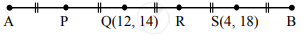 रेख AB वरील बिंदू P, Q, R व S यांच्यामुळे त्या रेषाखंडाचे पाच एकरूप भाग होतात. जर A-P-Q – R-S-B आणि Q(12, 14), S(4, 18); तर A, P, R आणि B चे निर्देशक काढा.