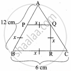 `"AP"/"AB" = "PQ"/"BC" ⇒ (12 - x)/"BC" = x/6`