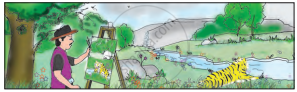 चित्रवाचन करके अपने शब्दों में कहानी लिखो और उचित शीर्षक बताओ: