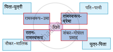संजाल पूर्ण कीजिए रामस्‍वरूप-उमा रिश्ते पति-पत शंकर-गोपाल प्रसाद नौकर-मालिक - Hindi (Second/Third Language) [हिंदी (दूसरी/तीसरी भाषा)]