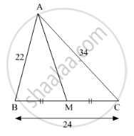 Seg AM is a median of ∆ABC. If AB = 22, AC = 34, BC = 24, find AM