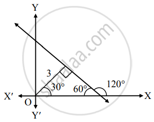 The equation of a line, having inclination 120° with positive direction of X−axis, which is at a distance of 3 units from the origin is