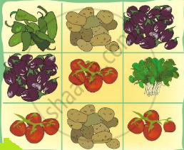 Ramu’s vegetable field has 9 equal parts. What vegetables does he grow?