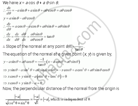 Show that the normal at any point θ to the curve x = a cosθ + a θ sinθ, y = a sinθ – aθ cosθ is at a constant distance from the origin.