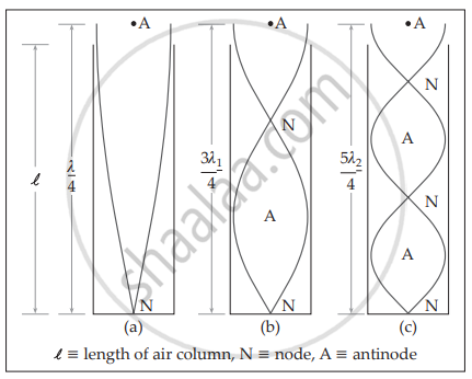 Let v represent the speed of sound in air. The simplest mode of vibration [Fig. (a)] contains a node at the closed end and an antinode at the open end. The distance between a node and the next antinode is 'λ/4', where λ represents the wavelength of sound. The wavelength (λ) and frequency (n) are: