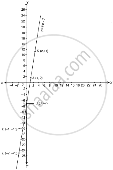 Firstly, to draw the graph of equation y = 9x – 7