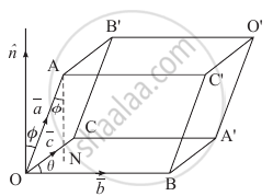 Let `bar(OA), bar(OB)` and `bar(OC)` represent the coterminus edges `bara, barb` and `barc` respectively of the parallelopiped.