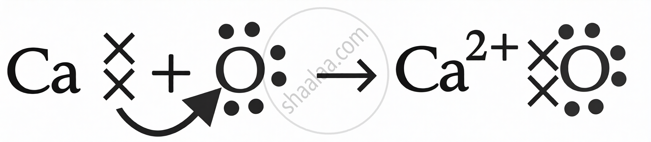 Show the formation of calcium oxide by transfer of electrons. Name the ions present in this compound.