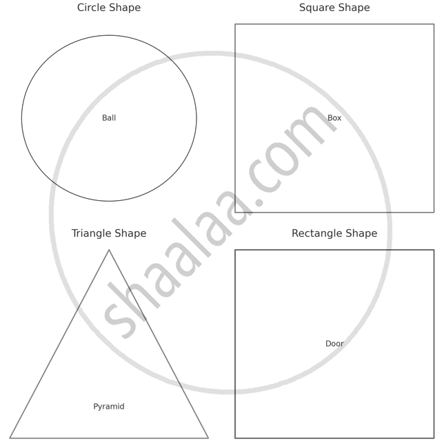 Show various objects of different shapes to the students to find out to which shape it matches. Initiate discussion.