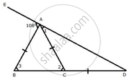 Sides AB and AC of a triangle ABC are equal. BC is produced through C up to a point D such that AC = CD. D and A are joined and produced (through vertex A) up to point E. If angle BAE = 108°; find angle ADB.