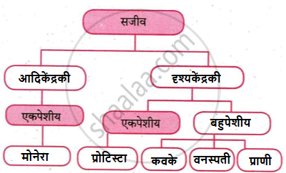 सजीव, आदिकेंद्रकी, दृश्यकेंद्रकी, बहुपेशीय, एकपेशीय, प्रोटिस्टा, प्राणी, वनस्पती, कवके यांच्या साहाय्याने पंचसृष्टी वर्गीकरण पूर्ण करा.