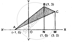 `- int_-1^1 "y dx" ("AB" "के लिए") + int_1^3 "y dx" ("BC के लिए") - int_-1^3 "y dx" ("AC के लिए")`