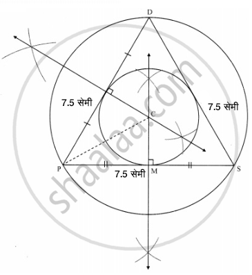 समबाहु त्रिभुज ΔDSP में DS = 7.5 सेमी तो ΔDSP केपरिवृत्त तथा अंतर्वृत्त की रचना कीजिए।परिवृत्त तथा अंतर्वृत्त की त्रिज्या का अनुपात ज्ञात कीजिए।