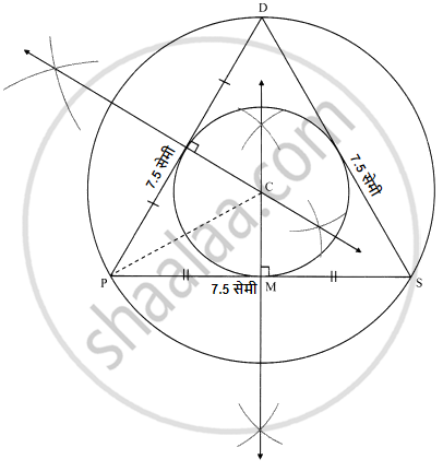- त्रिकोणाच्या बाजू DP आणि बाजू PS चे लंबदुभाजक काढा.