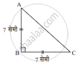 पक्ष: ∆ABC मध्ये, ∠ABC = 90°, AB = BC = 7 सेमी