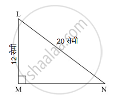 समकोण ∆LMN में ∠M = 90° यदि l(LM) = 12 सेमी और l(LN) = 20 सेमी है, तो रेख MN की लंबाई ज्ञात करो।