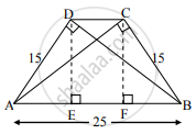 समलंब चौकोन ABCD मध्ये, रेख AB || रेख DC रेख BD ⊥ रेख AD, रेख AC ⊥ रेख BC, जर AD = 15, BC = 15 आणि AB = 25 असेल तर A(`square`ABCD) किती?