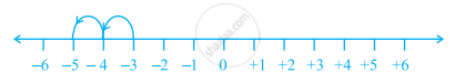 -3 में से 2 को घटाने के लिए हम संख्या रेखा पर -3 के बायीं ओर 2 पग चलते हैं और -5 पर पहुँचते हैं।