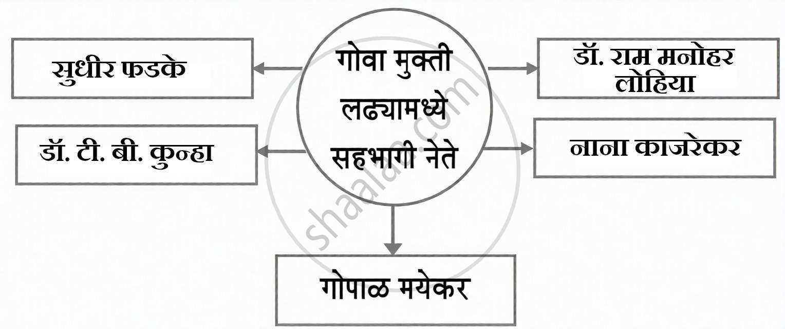 संकल्पना चित्र पूर्ण करा: गोवा मुक्ती लढ्यामध्ये सहभागी नेते - History [इतिहास]