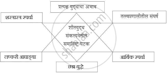 संकल्पना चित्र पूर्ण करा: शीतयुद्ध संकल्यनेतील समाविष्ट घटक प्रत्यक्ष युद्धाचा अभाव तत्त्वप्रणालीतील संघर्ष - History [इतिहास]