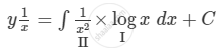 \[ \Rightarrow \frac{y}{x} = \log x\int\frac{1}{x^2}dx - \int\left[ \frac{d}{dx}\left( \log x \right)\int\frac{1}{x^2}dx \right]dx + C\]