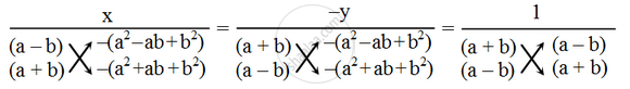 `\Rightarrow \frac{x}{(a-b)\times\{-(a^{2}+ab+b^{2})\}-(a+b)\times\{-(a^{2}-ab+b^{2})}\}=\frac{-y}{(a+b)\times\{-(a^{2}+ab+b^{2})\}-(a-b)\times\{-(a^{2}-ab+b^{2})\}}=\frac{1}{(a+b)\times (a+b)-(a-b)(a-b)}`