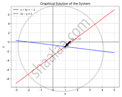 x + 3y = –2, 2x – y = 3